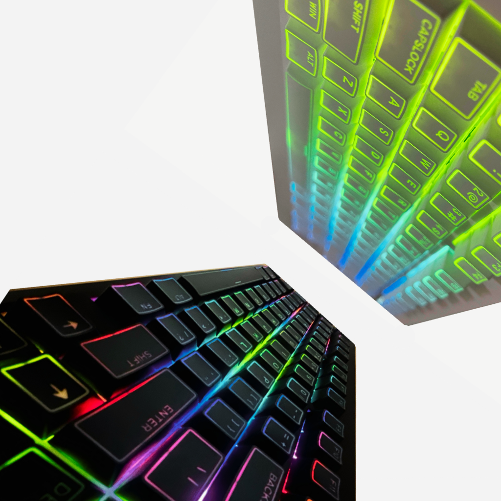 This keyboard features a white base or black with vibrant RGB lighting, ideal for both gamers and creators. A bold layout to offer premium function without sacrificing space.